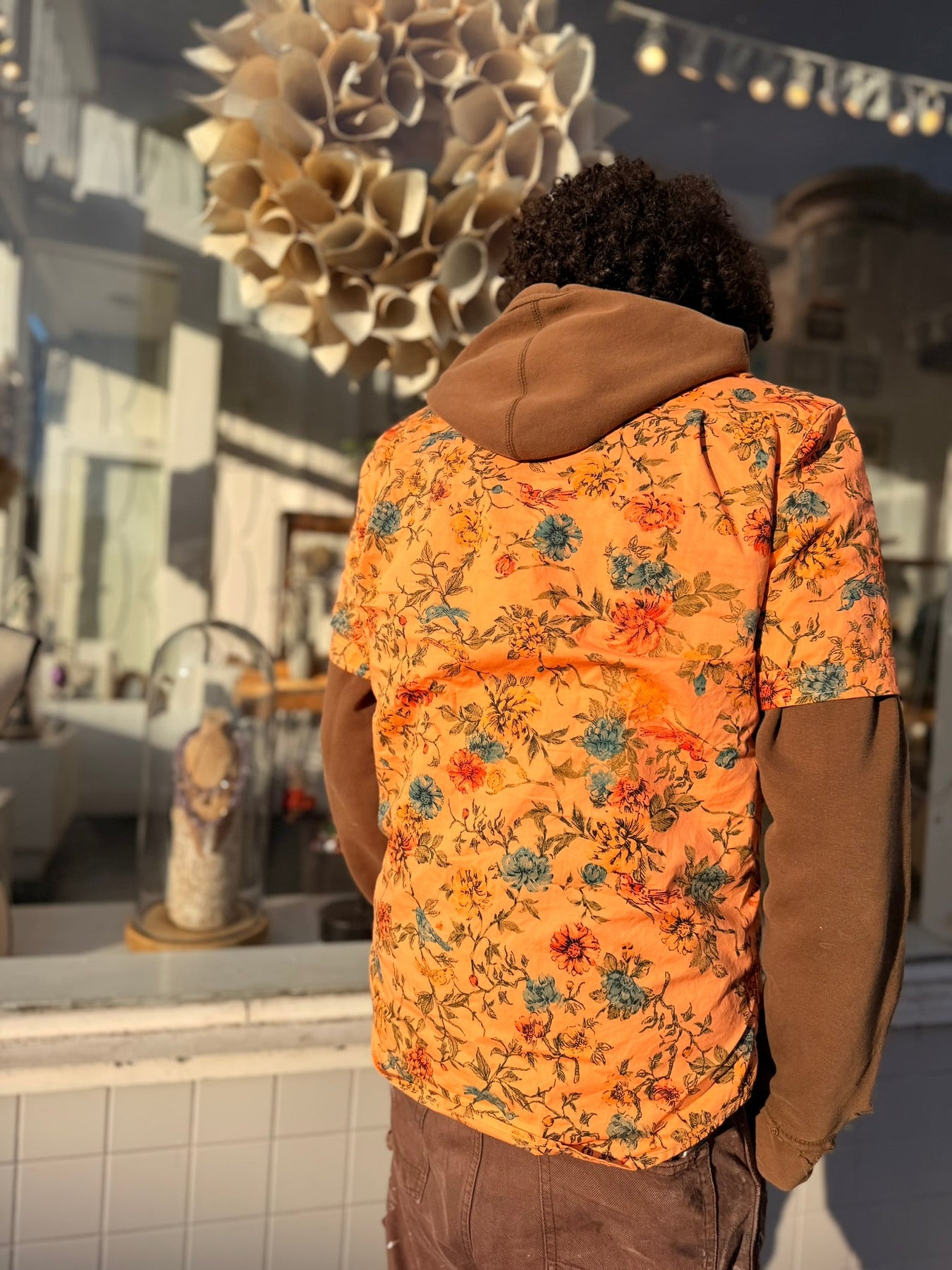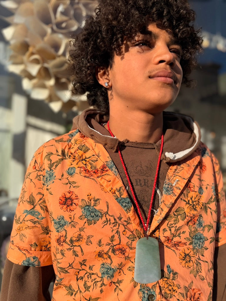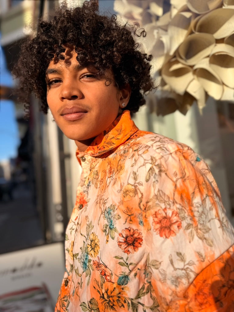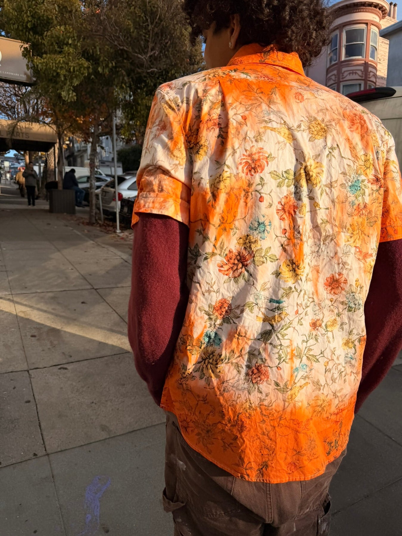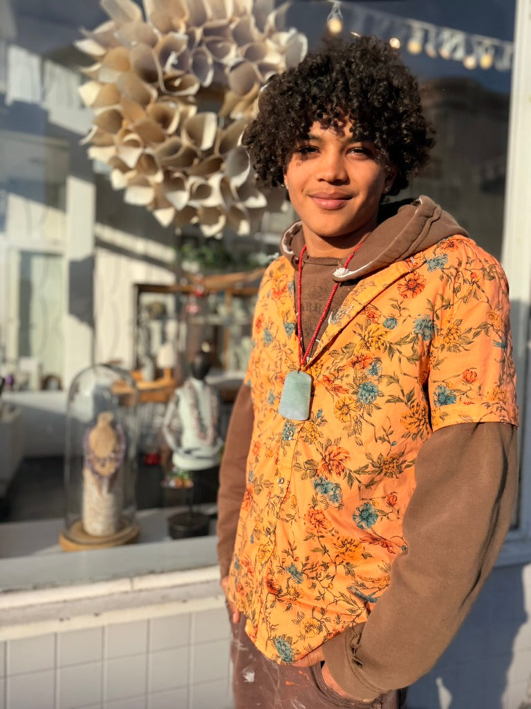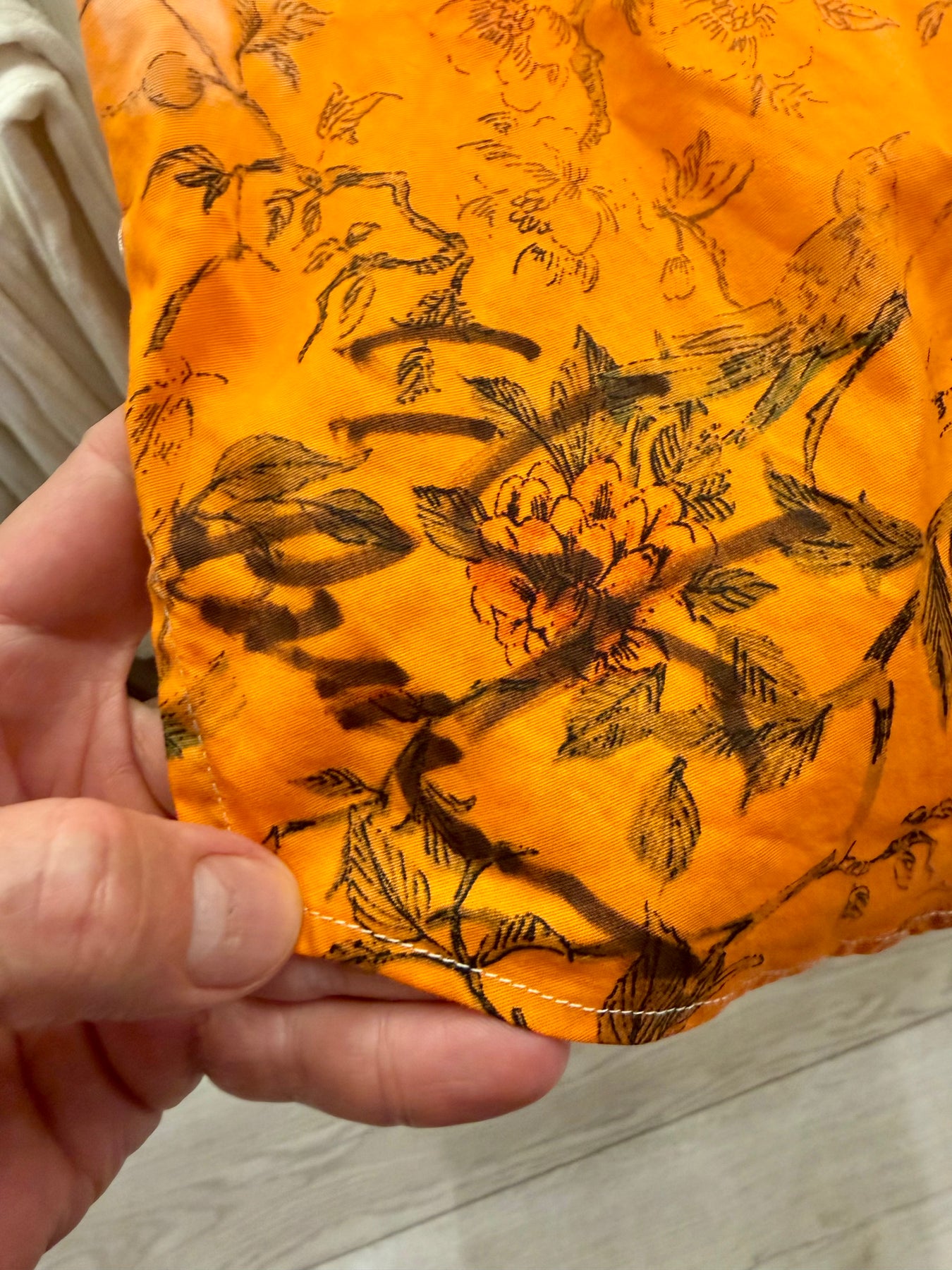 Left to bleed in the washer barrel, then bleached to near nothing, Schuyler, our founder, re-dyed 63 pieces, by hand, with the assistance of his friend Lucy, on his back patio in San Francisco.