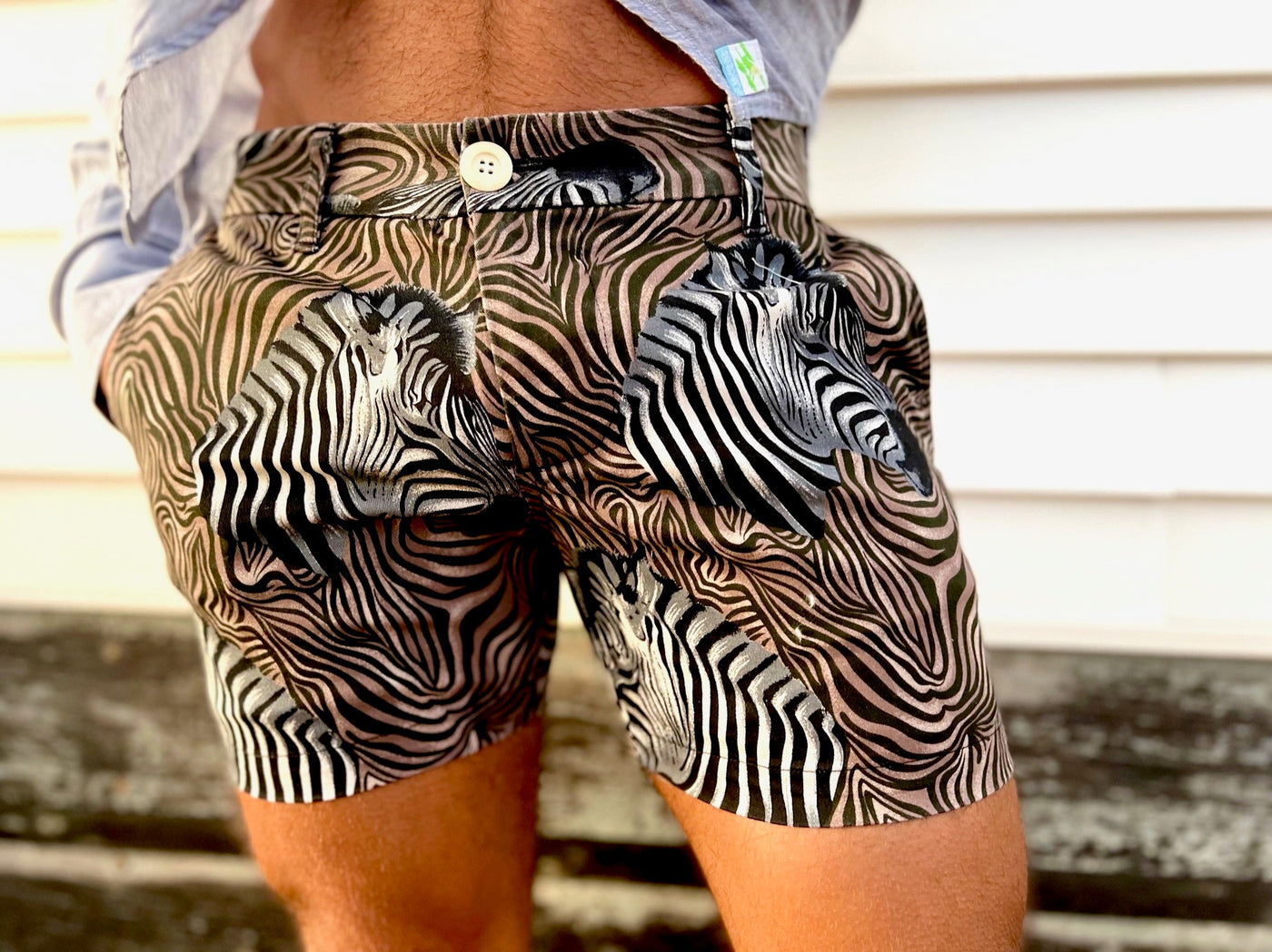 A special cut had to be arranged to accomodate this 'directional' print. Look closely, those zebras face up! Available in Blood and Bones.
